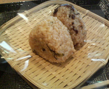 おにぎりは「たかな」、「うめ」、「こんぶ」、「たくあん」等から2つ選べます。