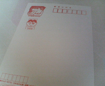 最近イラストの練習をしてるんやし、イラストも自分で書こうと思ってましたが、時間がないので、コンビニでイラストつきのはがきを買ってしまいました。