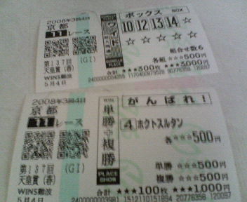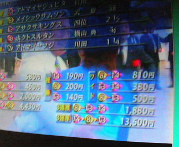 いつもはワイド5頭ボックス100円ずつで計1,000円賭けるのですが、今回はG1ということと、2ヶ月ぶりということで、奮発しました。