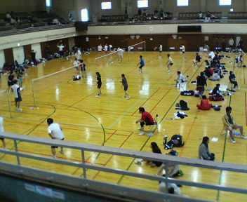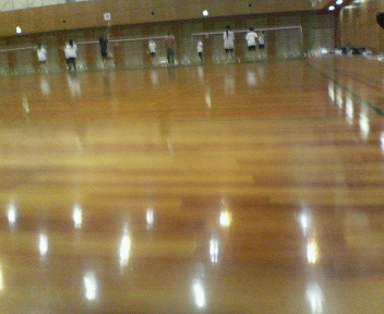 一方、お向かいでは、中学校女子バドミントン部が、ところ狭しと練習してました。