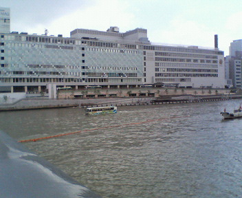 帰りに天満橋下の川を見たら、水上バスみたいなものが走っていました。