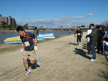 まっすぐ走って折り返して、元の場所でタスキを渡すというコースです。