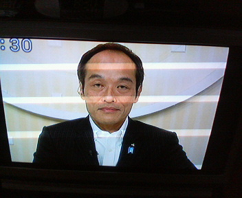 各党のえらい人が集まって討論する中で、自身はスタジオにはおらず、どっかから中継して出ていました。