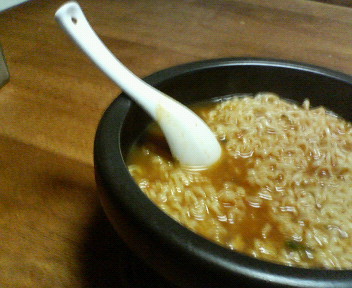 今晩はインスタントラーメンの「辛」等を食べました。