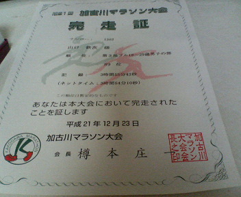 そして、趣味の中でも一番うれしかったことは、フルマラソンを4時間切って完走できたことです。