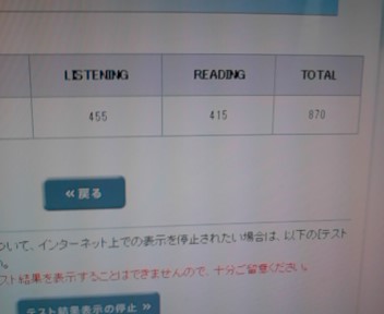 ECCのテストは苦手で、いつもトーイック600点レベル、英検2級レベル等、実際よりかなり低い判定を下されてしまいますが、まーいいです。