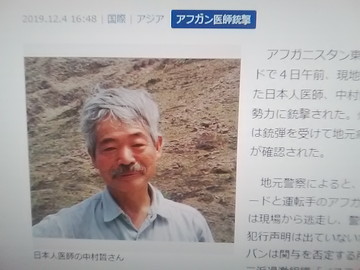 アフガニスタン等で医師活動等をしていた中村哲さんが死亡したようです。