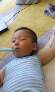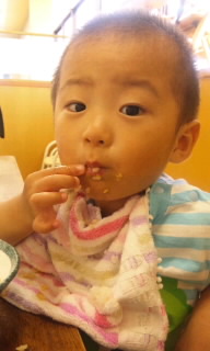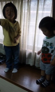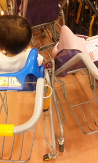 さすがに公園はキツイので、スーパーをウロウロ歩いて体力消耗させると言う、ちょっと迷惑な遊びをしています。