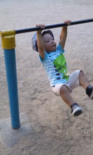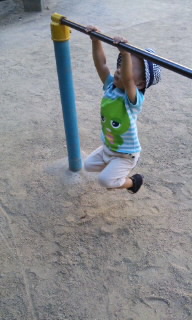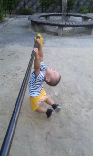 鉄棒で遊ぶマル・・・