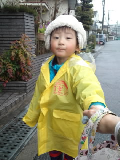 もし雨が少しやんだら、カッパ着せて散歩行こ。