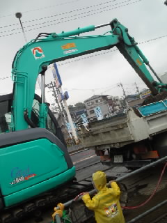 写真は、ショベルカーとマル。
