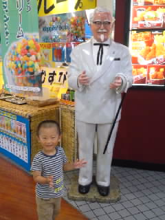 写真は、ケンタッキーのおじさんの真似をするマル。