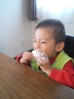 マルは、おにぎりが大好きです。