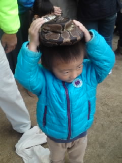 ヘビを頭に乗せてみたり。