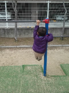 大きい方の鉄棒にも手が届く様になり、成長を実感。