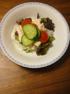 冷蔵庫にあった物で、鳥むね肉のサラダを作りました。