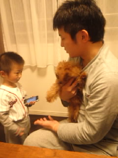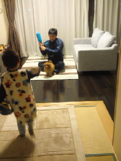 昨日、久しぶりにマルが起きてる時間に、マル父帰宅。