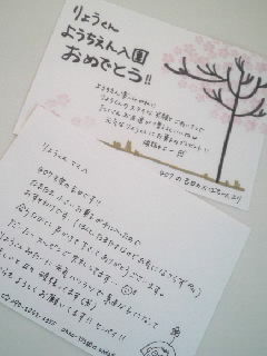 昨日、同じマンションのママさんから、手紙とお菓子を頂きました。