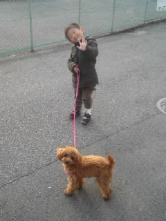 散歩の途中でリードを持たせてあげたら、すごく喜んでいた。