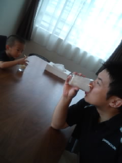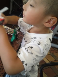丸子の散歩も行って、ミックスジュースも飲んで、一通り暴れてから幼稚園へ行きました。