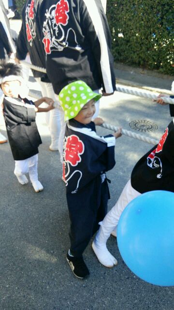 近所の人が大人用のハッピを貸してくれたので、ファミリータイムってやつに参加出来ました。