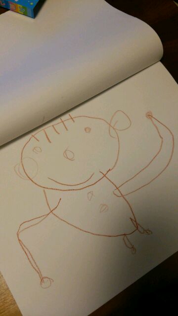 写真は、一人で仮面ライダーごっこをしているマル。