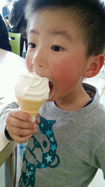 公園で汗だくになってから、ヨーカドーでソフトクリームタイム。。
