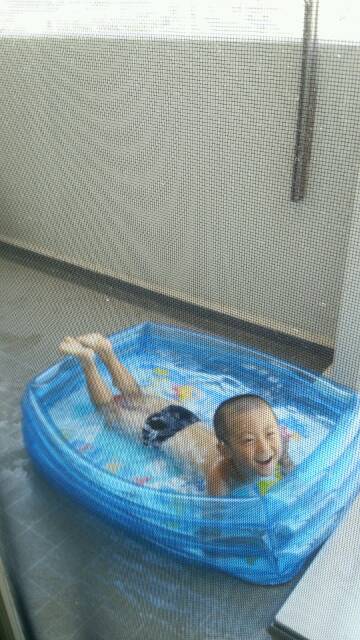 ベランダでプールしてたら、しまいに水着脱いで裸やし。。