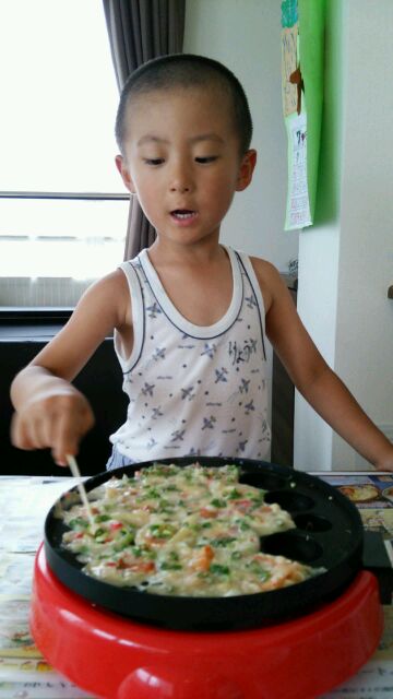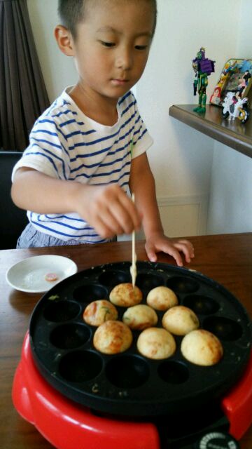 マル父もご飯いらない日だったので、タコは入れず、ウインナーとチーズばっかりにしたんやけど、、、