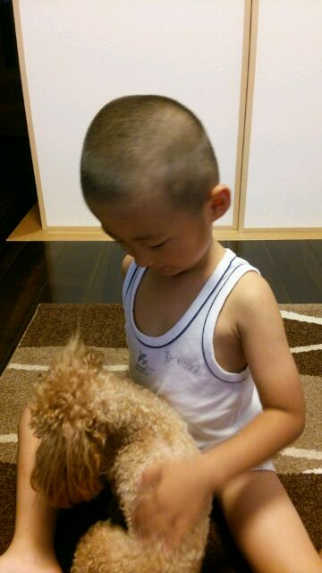 帰って来てから、マルの自転車に付き合わないといけないので、暑い暑い。。。。。。