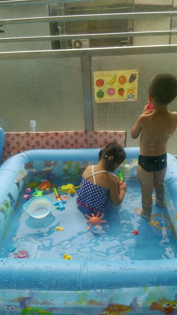 朝の8時頃からベランダプールしてるし、近所迷惑やんな。。。