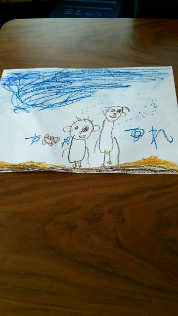 この絵、私とマルが砂で遊んでいる所を書いたみたい。