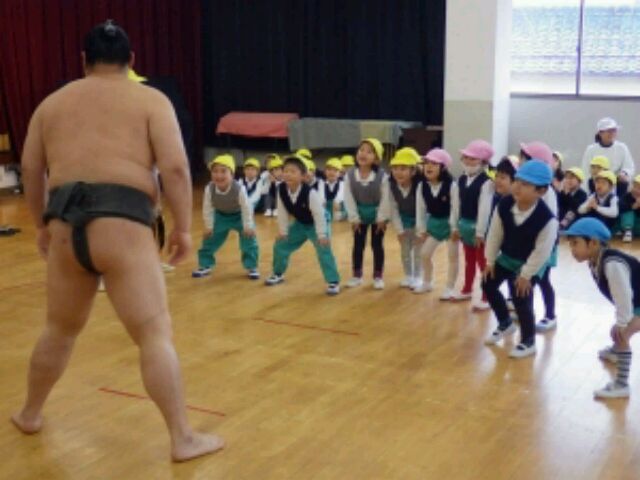 幼稚園に、とよのしま関含め、5人の力士が来ました。