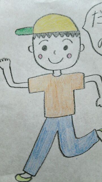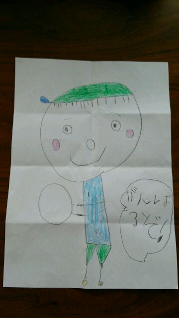 お父さんが、タイヤを運んでいる絵を書いていました。