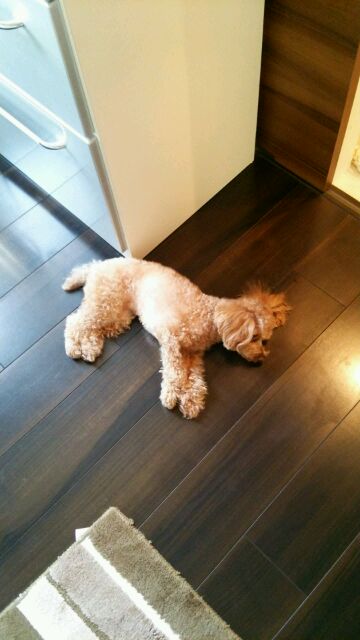 最近暑くなって来たから、こんな感じで床にベターッと寝そべっています。
