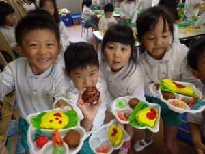 同じマンションで同じ幼稚園の、ややこしい子が飼っている犬にあげると言って、一緒に作りました。