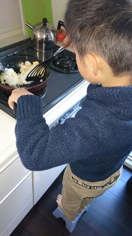 ただただ混ぜて、塩コショウとしょう油かけるだけで楽しいみたいです。