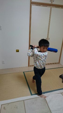バッド振ってます。