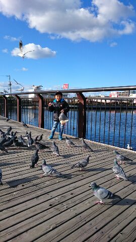 今日は、公園の鳩に餌やりに行きました。