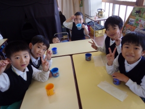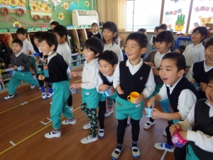 節分の豆食べてる写真、幼稚園のホームページに載っていました。