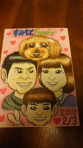 マル父が、得意先の人の知り合いの絵描きさんに、似顔絵書いてもらって来ました。
