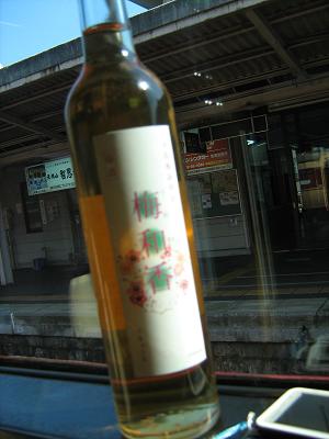 帰りの電車の肴として、お土産屋で梅酒を買いました。現地で醸造した酒を使った梅酒みたいで、すごく日本酒っぽかったです。
