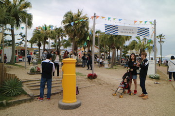 幸運を呼ぶ黄色いポストです。このあたりは屋台もたくさんあり、賑わっています。