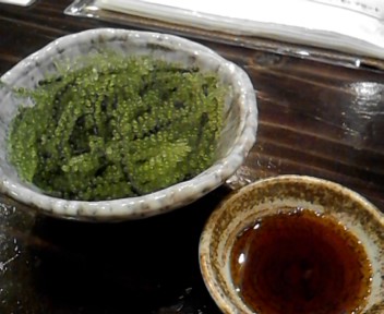 海ぶどうです。食感と塩っぽさがお酒に合いますね。
