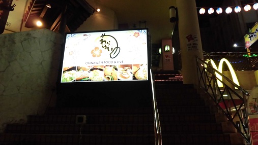 国際通りにはアグー豚を食べられる店がたくさんありましたが、その中で、沖縄三味線ライブもやっている店にしました。国際通りの真ん中らへんにある、割と目立つ店です。
