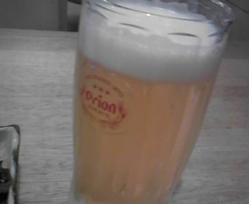 冷え冷えのオリオンビールです。観光の疲れが癒えますね。