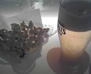 ポップコーンとモルツです。モルツは5杯飲みました