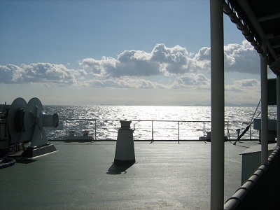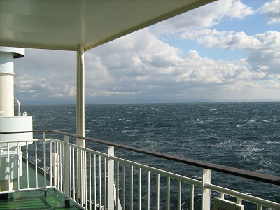 フェリーに乗ったのはおそらく20年ぶりくらいやと思います。フェリーの迫力や海の壮大さ、開放感、風の気持ちよさ、揺れの心地よさは何事にも変えがたいですね。