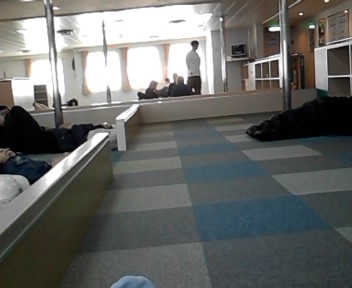 さらに印象的やったのが、フェリーの船内です。みんな横になって本読んだり寝たりしてかなりくつろいでいます。ものすごい緩やかなまったりした空間に驚かされました。